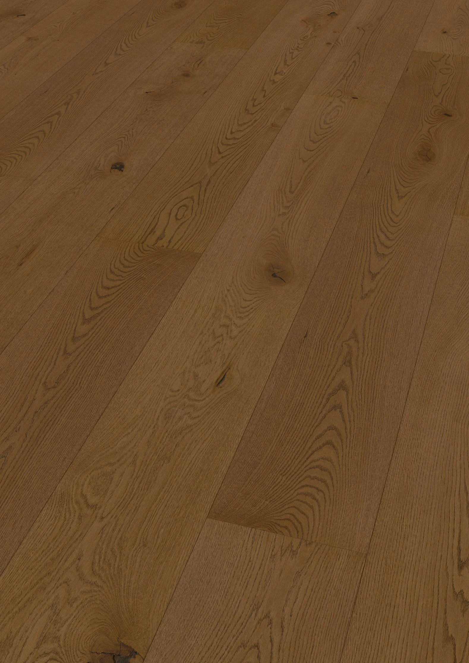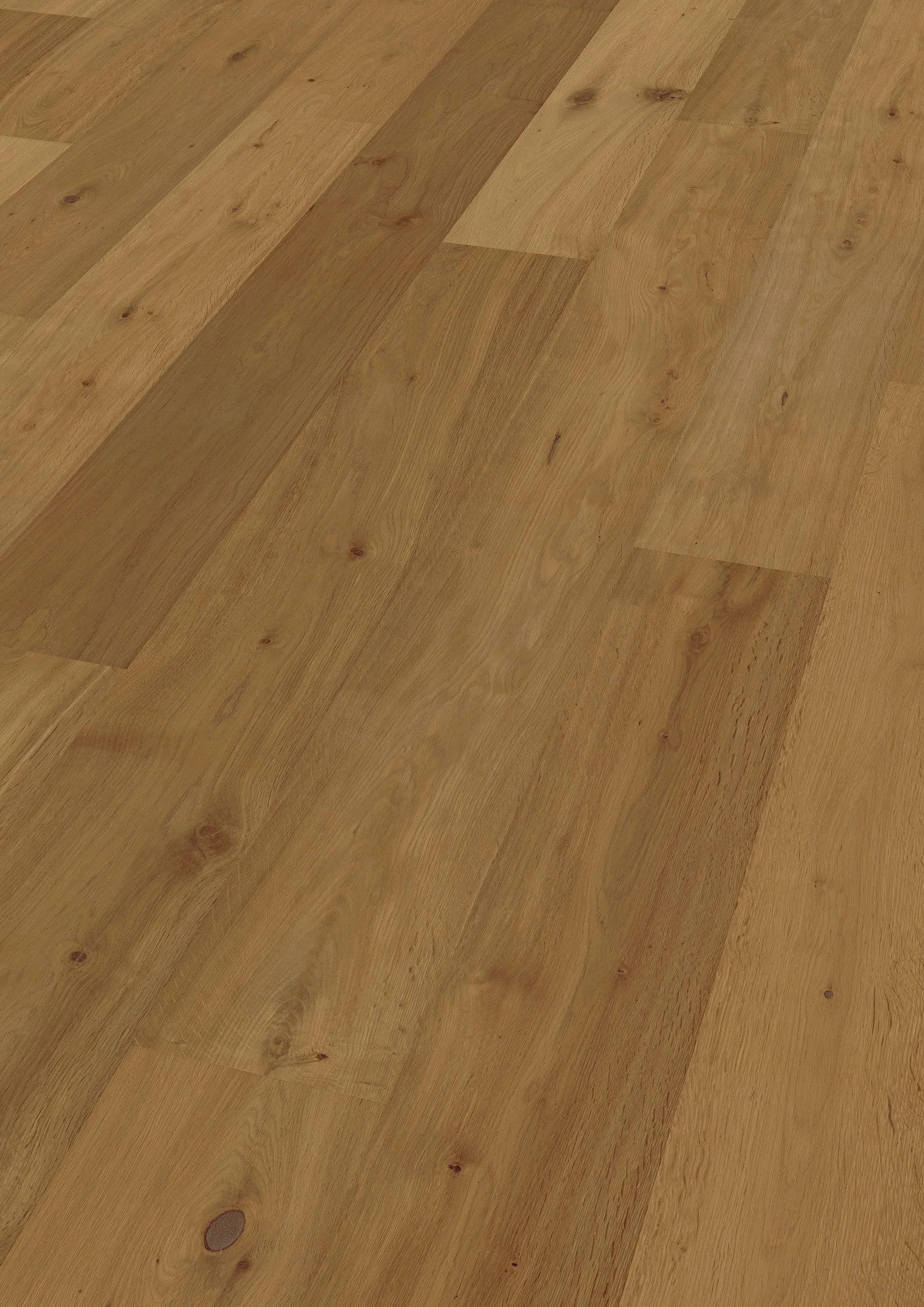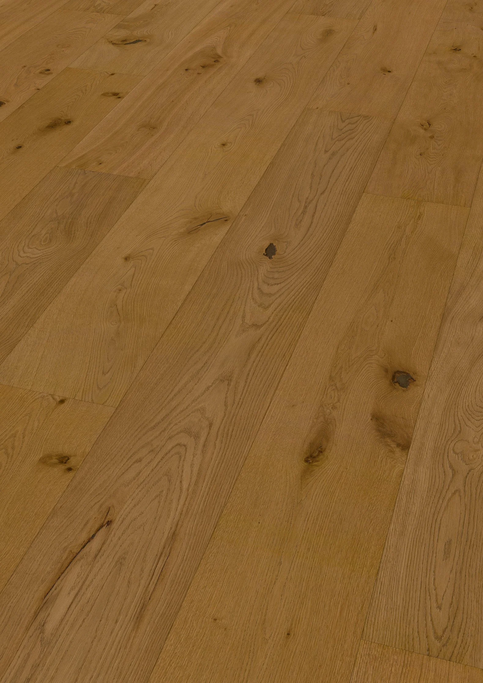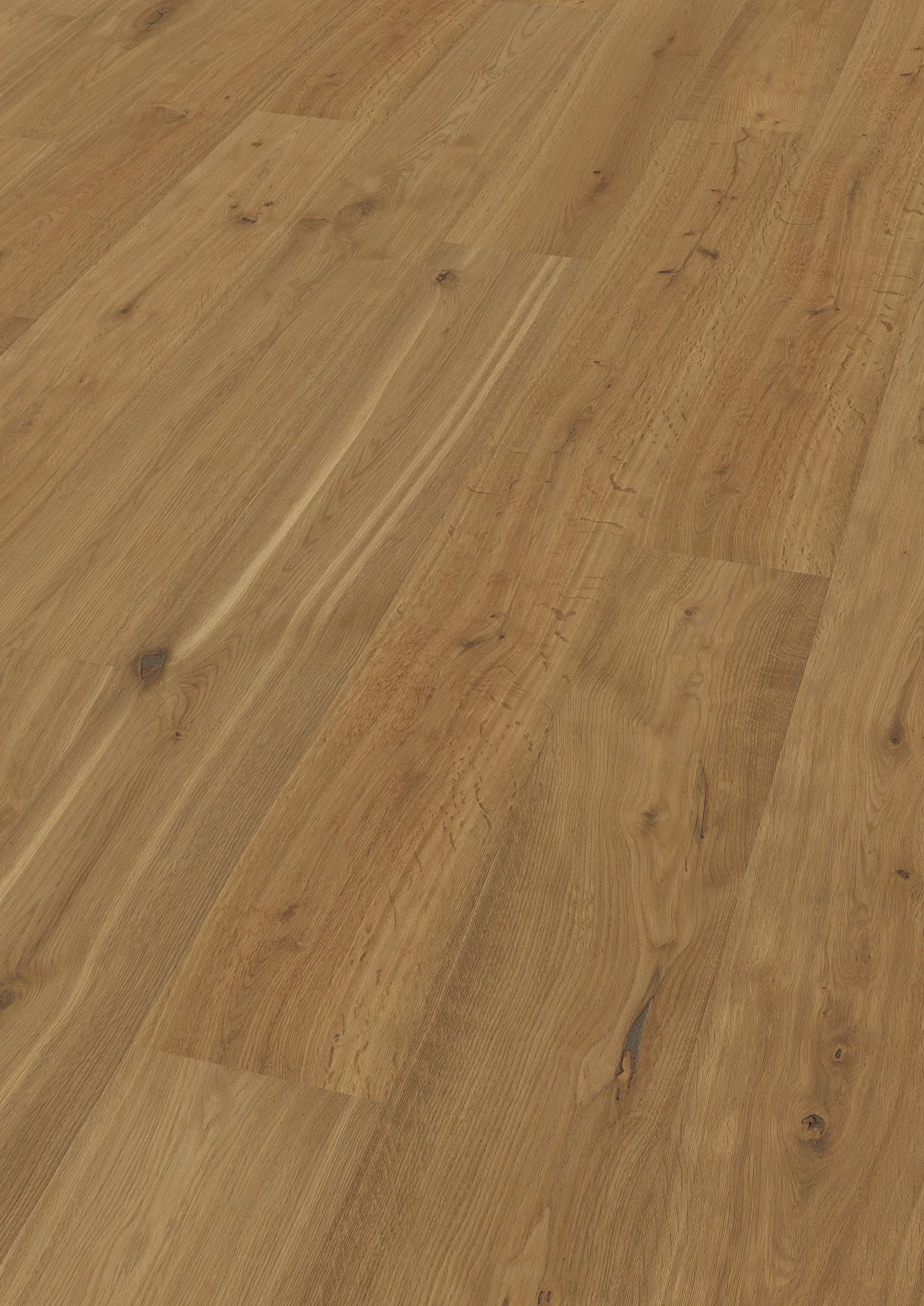 Skap en imponerende bokvalitet! Ter Huernes ekstra brede planker i 2375 mm lengde, 270 mm bredde og 11 mm høyde kommer helt spesielt til sitt eget i større rom, og den ekstra matte overflaten fremhever også det naturlige uttrykket til europeisk eik.